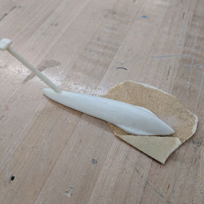 The finished part was printed on a FormLabs Form 2 SLA 3D-printer. After being printed, the part needed to be placed in isopropyl alcohol baths and then heat cured. I sanded off the rough edges left by the support material.